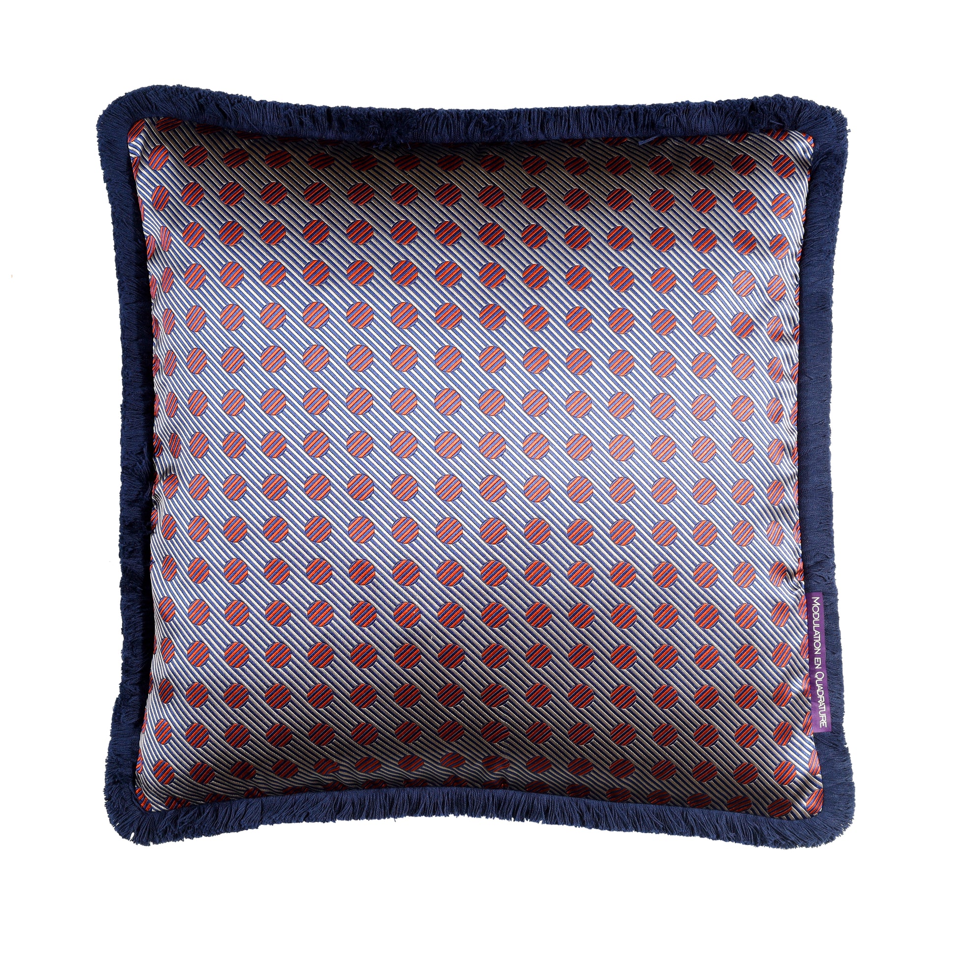 The luxury cushion Olympe sand is an expressive silk jacquard that combines stripe and dot design.